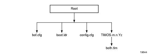 When the bootstrap image is loaded, the BOF is read to obtain the location of the image and configuration files. The BOF must be located on the same compact flash drive as the boot.ldr file.