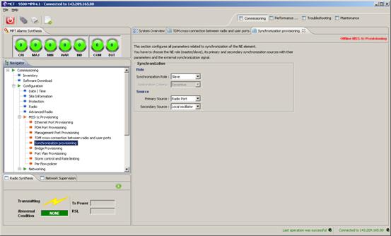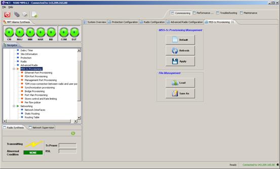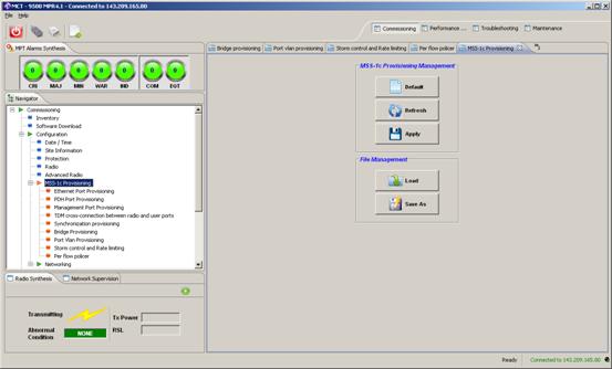 Later, in this document, the NE MAC Address of the MPT/MSS-1C combination will be displayed via the 9500 Craft Terminal software. This address is 00:11:3F:07:B4:C2 and should be utilized as the remote-mac setting in the E1 sap configuration.