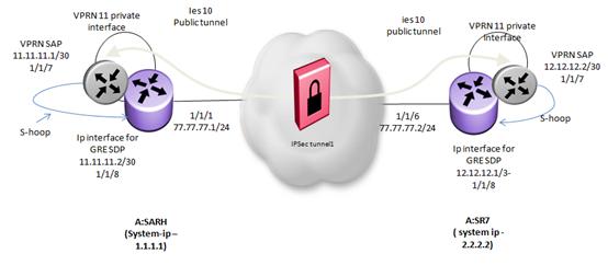 1. Configure an Internet interface or IES interface that provides IP reachability to the tunnel peers in the Global Routing Table (GRT).