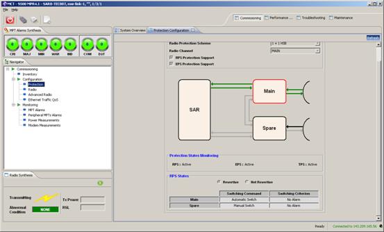 There is no configuration to be performed on the Protection tab, but this screen graphically displays the switch status: