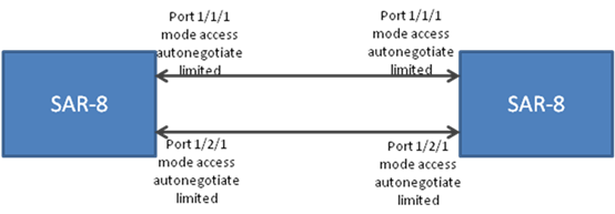 In this example, the 7705 SAR-8 ports 1/1/1 and 1/2/1 are connected to the 7705 SAR-8 ports 1/1/1 and 1/2/1 respectively.