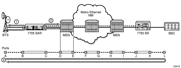 In ATM channel-bonding schemes, the end-user packets are split into 53-byte cells. Each cell is tagged with a sequence ID by replacing bits in the ATM header with sequence ID (SID) bits between bonding entities. The ATM bonding implementation on the 7705 SAR-M currently only supports a 12-bit SID, although G.998.1 specifies support for either an 8-bit or 12-bit SID bound by the aggregate rate, differential delay, and number of links.