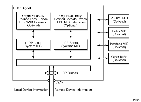 The IEEE 802.1ab Link Layer Discovery Protocol (LLDP) allows stations that are attached to the same IEEE 802 LAN (emulation) to advertise information for the purpose of populating physical or logical topology and device discovery management information databases. In other words, IEEE 802.1ab Link Layer Discovery Protocol allows an LLDP agent to learn connectivity and management information from adjacent stations. The information obtained via this protocol is stored in standard MIBs which can be accessed via management protocols such as SNMP.