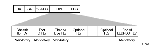 Each LLDPDU contains four mandatory TLVs and can contain optional TLVs as selected by network management. Figure 23 shows the LLDPDU format.
