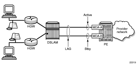 All lines for both the 6-port DSL Combination module and the 8-port xDSL module are configured from the ISAM via the G.994.1 G.hs handshake. All lines operate in auto-detect mode; therefore there are no individual line configurations required with the exception of the configuration of VPI/VCI for ATM bonding and the configuration of ADSL2/2+ Annex B support if ISDN support is required, on an xDSL interface.