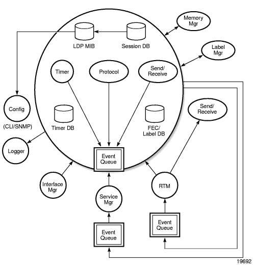 Figure 11 shows the relationships between LDP subsystems and other 7705 SAR OS subsystems. The following sections describe how the subsystems work to provide services.