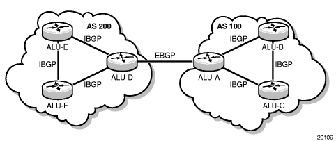 Border Gateway Protocol (BGP) is an inter-autonomous system routing protocol. An autonomous system (AS) is a network or a group of routers logically organized and controlled by a common network administration. BGP enables routers to exchange network reachability information, including information about other ASs that traffic must traverse to reach other routers in other ASs. In order to implement BGP, the AS number must be specified in the config>router context. A 7705 SAR OS BGP configuration must contain at least one group (a collection of related BGP peers) and include information about at least one neighbor (peer).