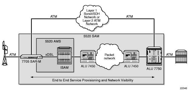 A service is a type of telecommunications connection from one place to another. These telecommunications connections have the particular attributes and characteristics that are needed to provide a specific communications link through which an information flow or exchange can occur. The 7705 Service Access Router (7705 SAR) offers VLL services, Layer 2 multipoint VPN services (VPLS), Layer 3 MPLS VPN services (VPRN), and Layer 3 routed/IP services.