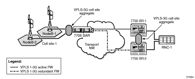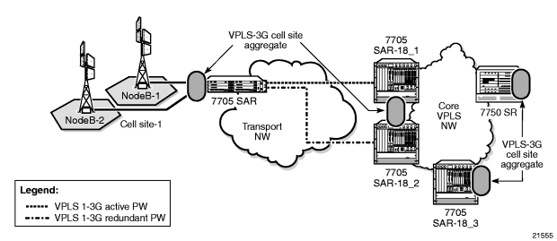 In addition, capacity changes in a radio network could make mobile operators shuffle their transmission links. A simple Layer 2-based backhaul could avoid this complication because the IP addresses are not required to be configured on SAPs (that is, the interfaces facing the base stations or similar equipment), meaning that the 7705 SAR and the backhaul network would not be impacted by mobile layer IP changes. Alternatively, the 7705 SAR implements VPLS to provide any-to-any connectivity at the Layer 2 level and an IP-agnostic network build-out option.