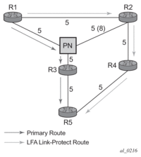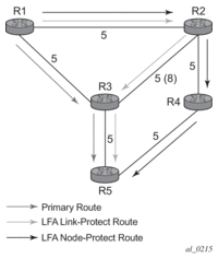The source or destination address of the BFD session is the local or remote address of link Hello adjacency. When multiple links exist to the same LDP peer, a Hello adjacency is established over each link. However, a single LDP session will exist to the peer and will use a TCP connection over one of the link interfaces. Also, a separate BFD session should be enabled on each LDP interface. If a BFD session times out on a specific link, LDP will immediately bring down the Hello adjacency on that link. In addition, if there are FECs that have their primary NHLFE over this link, LDP triggers the LDP FRR procedures by sending to IOM and line cards the neighbor/next-hop down message. This will result in moving the traffic of the impacted FECs to an LFA next-hop on a different link to the same LDP peer or to an LFA backup next-hop on a different LDP peer depending on the lowest backup cost path selected by the IGP SPF.