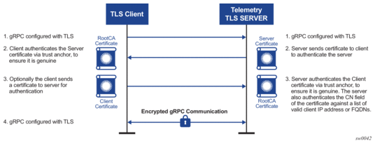 SR OS relies on existing authentication mechanisms for gRPC channels, including: