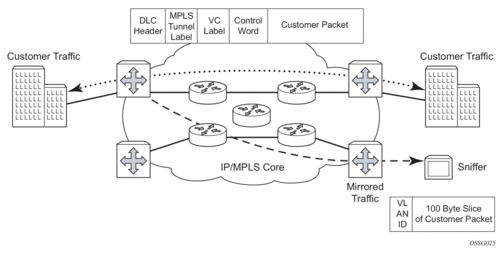 Original packets are forwarded while a copy is sent out the mirrored port to the mirroring (destination) port. Service mirroring allows an operator to see the actual traffic on a customer’s service with a sniffer sitting in a central location. In many cases, this reduces the need for a separate, costly overlay sniffer network.