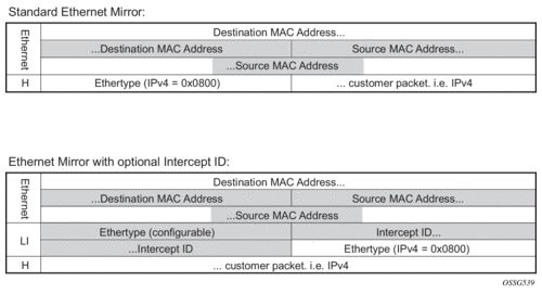 This mirroring does not change the priority of the mirror order (port, SAP, sub, filter). Lawful intercept mirrors can use the flag and their priority is also maintained.