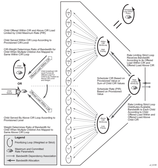 The virtual hierarchical scheduling bandwidth distribution mechanism complements the packet scheduling provided by the queue scheduling (see Queue Scheduling).
