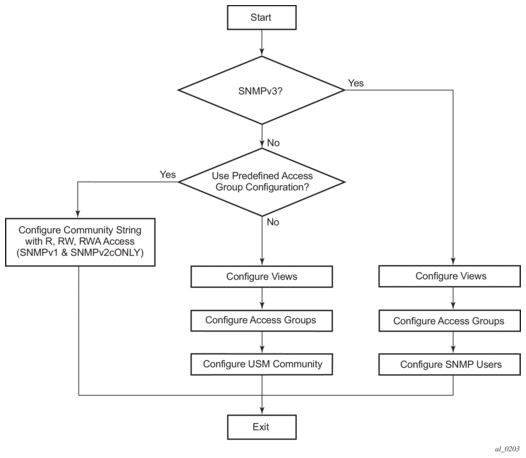 Figure 14 depicts the configuration requirements to implement SNMPv1/SNMPv2c, and SNMPv3.