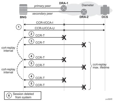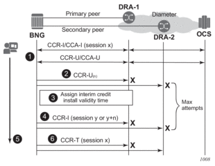 The handling of Diameter retransmissions is crucial for the Diameter Multi-Chassis Redundancy operation. Retransmissions provide the means to recover a Diameter session that was left in an unacknowledged state due to failure of the path between the node and the DRA/PCRF.
