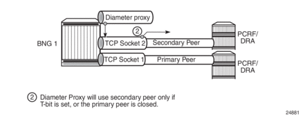 SR OS supports Diameter client functionality where it performs access control for a device running on the edge of the network. A Diameter client in SR OS can only initiate a connectivity request towards the peer but it will not accept a connectivity initiation request from the peer.