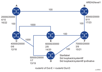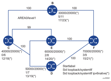 Above commands should fail if the network interface is not of type loopback or if the interface is defined in an IES or a VPRN context. Also, assigning the same SID index/label value to the same interface in two different IGP instances is not allowed within the same node.