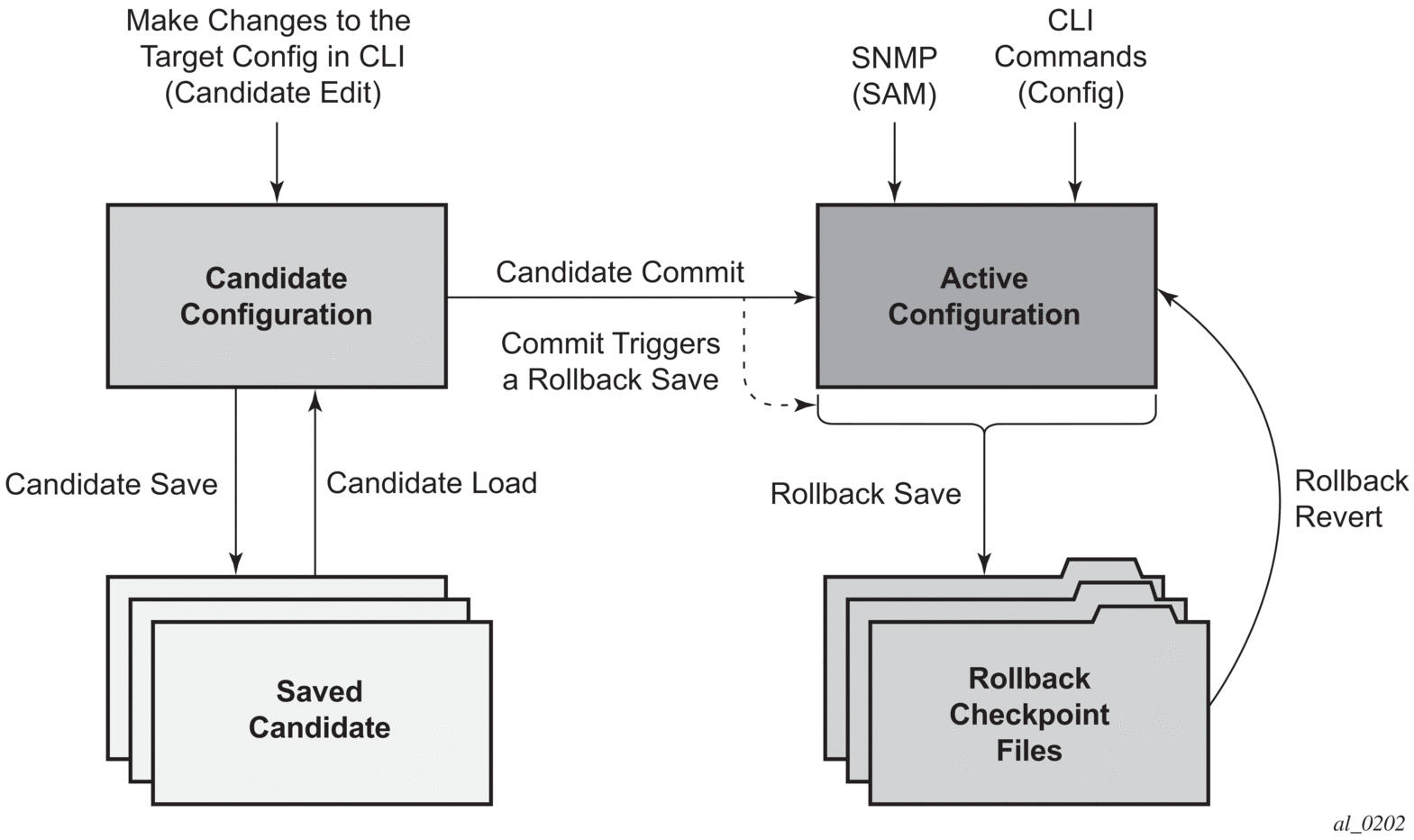 The transactional configuration and configuration rollback functions combine to provide the operational model depicted in Figure 7.