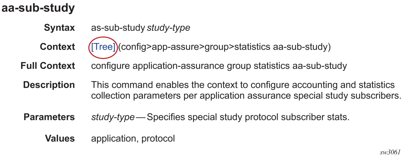 Clicking on [Tree] in a command description context links directly to the command in the CLI tree. Figure 4 shows the [Tree] element.