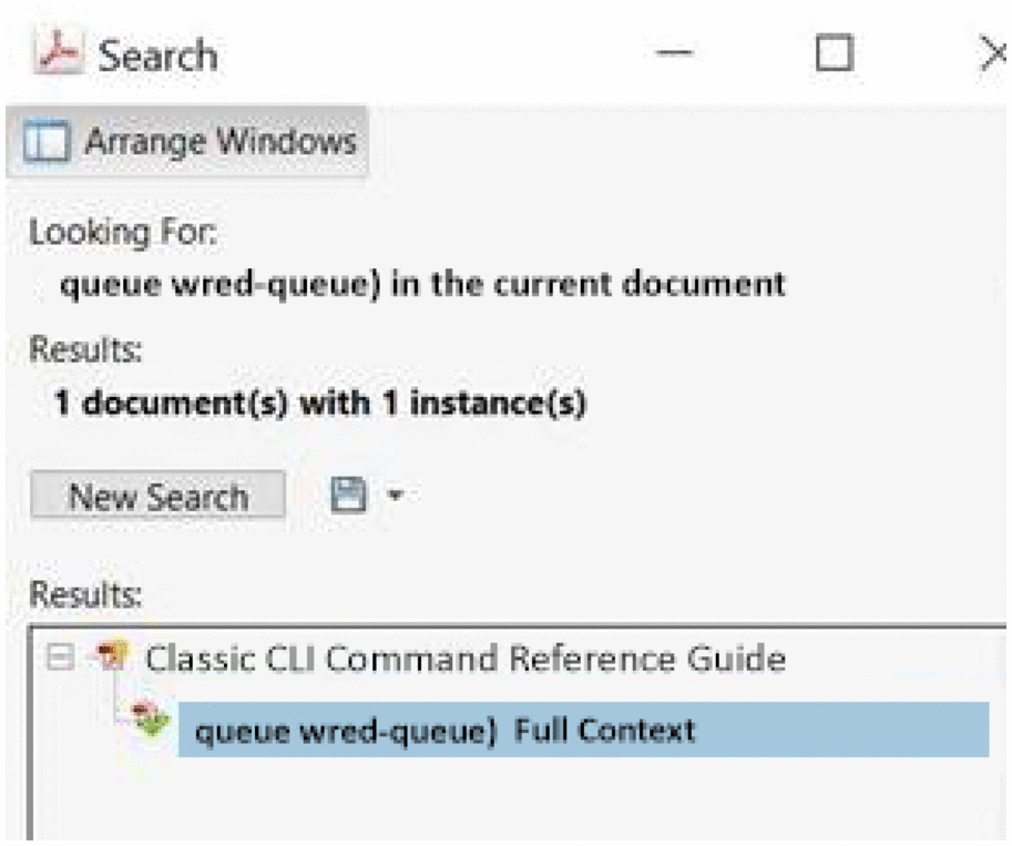 If you add the context and closing parenthesis, the resulting search returns only matching Context entries. It will not return instances of the same command found elsewhere in the guide. Figure 3 shows an example of a search.