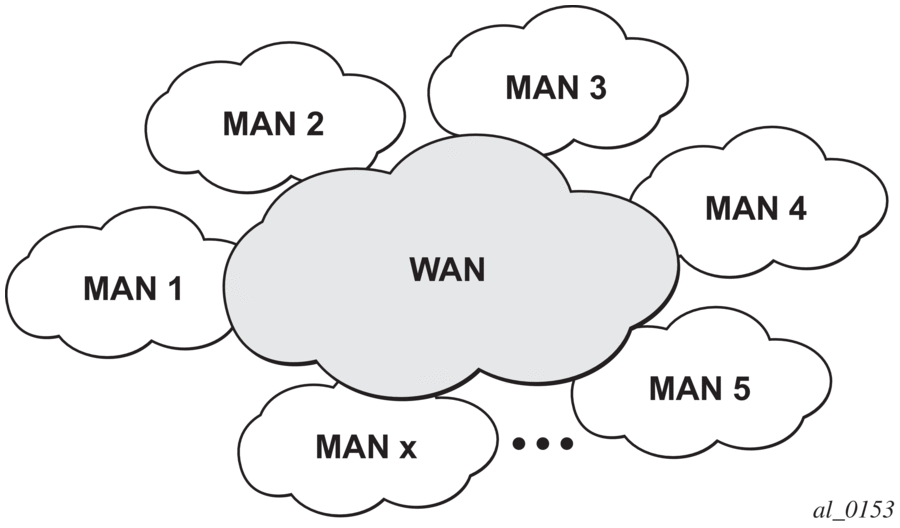 HVPLS introduced a service-aware device in a central core location in order to provide efficient replication and controlled interaction at domain boundaries. The core network facing provider edge (N-PE) devices have knowledge of all VPLS services and customer MAC addresses for local and related remote regions resulting in potential scalability issues as depicted in Figure 106.