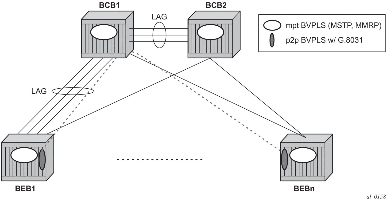 BEB1 to BCB1 L2: 2/1/1 – Member port of LAG-emulation ET1 |