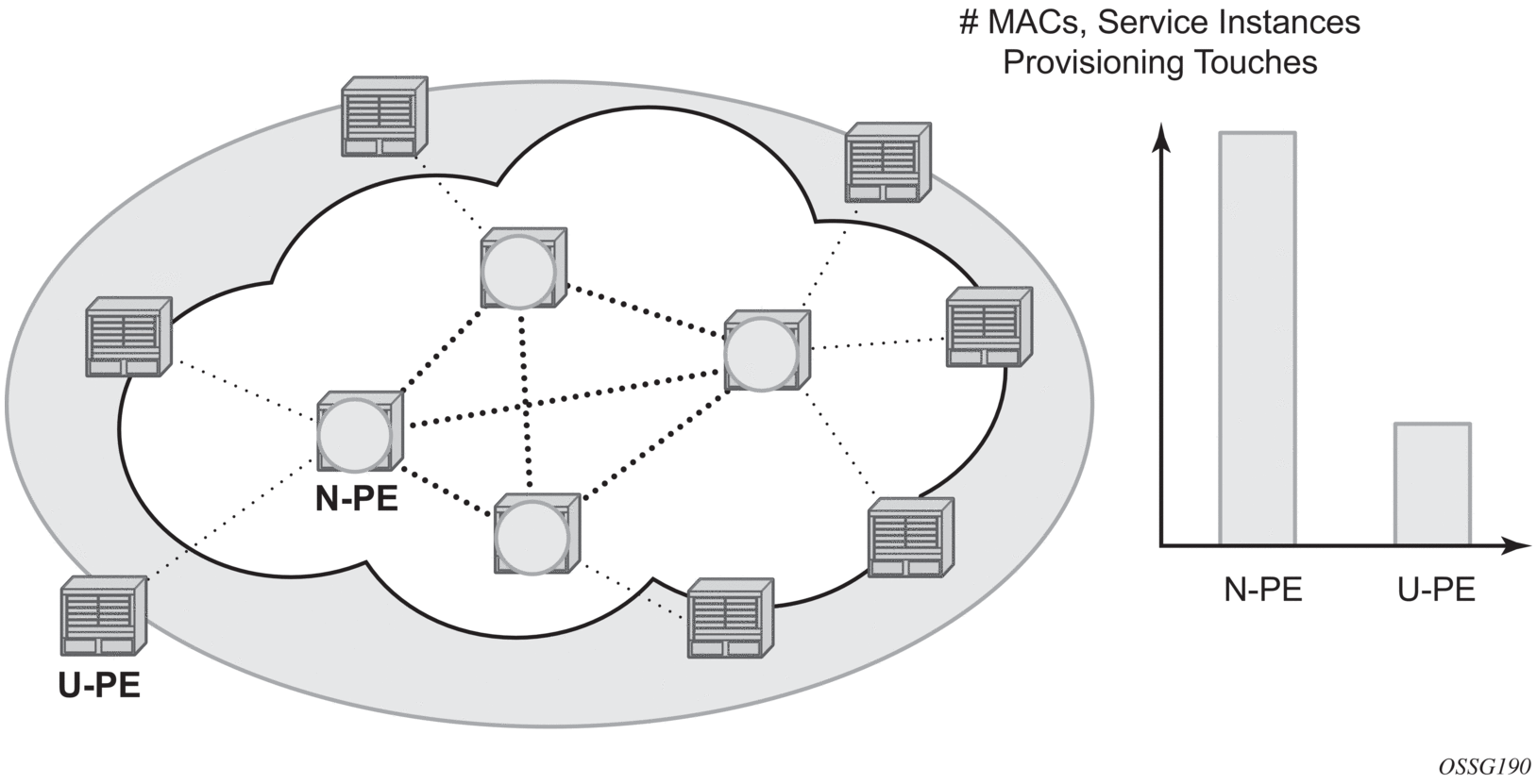 In a large VPLS deployment, it is important to improve the stability of the overall solution and to speed up service delivery. These goals are achieved by reducing the load on the N-PEs and respectively minimizing the number of provisioning touches on the N-PEs.