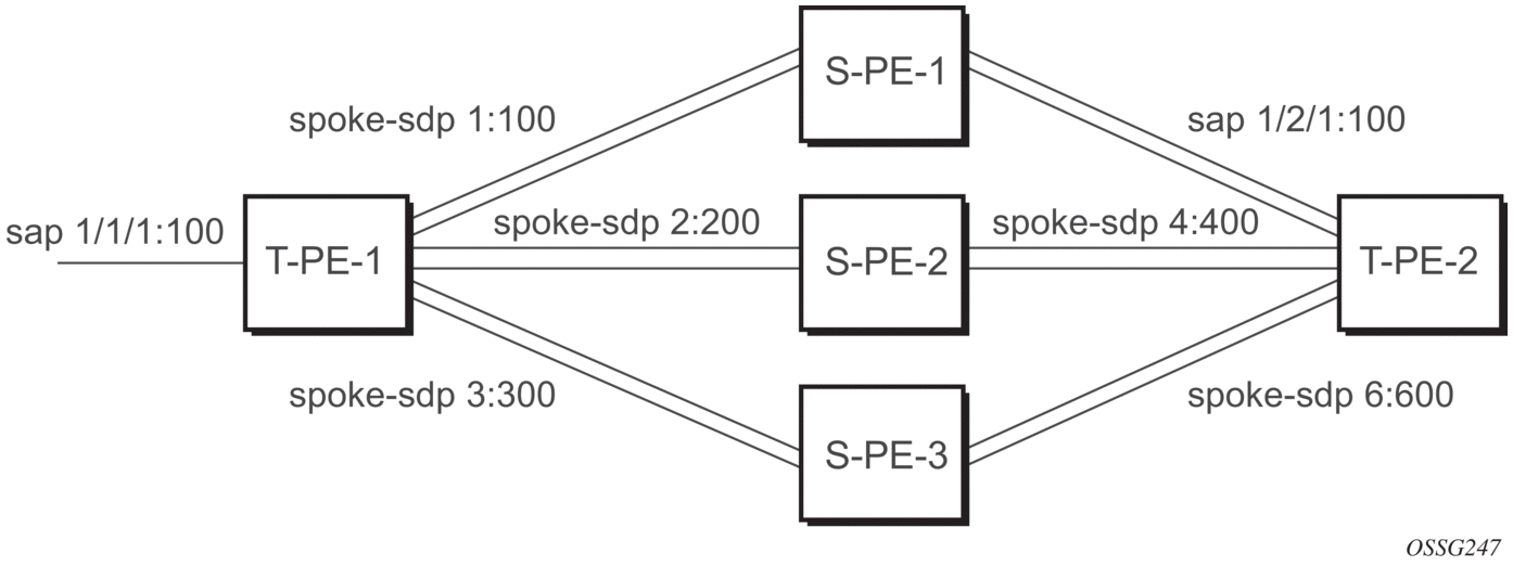 A spoke-SDP is treated like the equivalent of a traditional bridge “port”, where flooded traffic received on the spoke-SDP is replicated on all other “ports” (other spoke and mesh SDPs or SAPs) and not transmitted on the port it was received.
