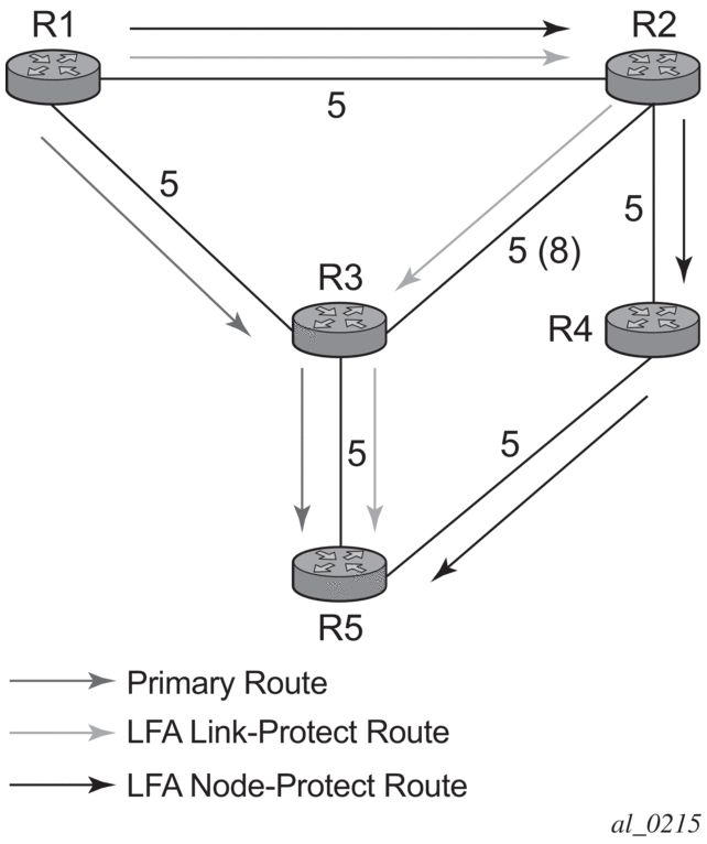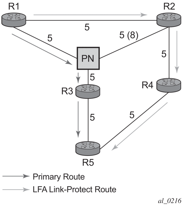 The source or destination address of the BFD session is the local or remote address of link Hello adjacency. When multiple links exist to the same LDP peer, a Hello adjacency is established over each link. However, a single LDP session will exist to the peer and will use a TCP connection over one of the link interfaces. Also, a separate BFD session should be enabled on each LDP interface. If a BFD session times out on a specific link, LDP will immediately bring down the Hello adjacency on that link. In addition, if there are FECs that have their primary NHLFE over this link, LDP triggers the LDP FRR procedures by sending to IOM and line cards the neighbor/next-hop down message. This will result in moving the traffic of the impacted FECs to an LFA next-hop on a different link to the same LDP peer or to an LFA backup next-hop on a different LDP peer depending on the lowest backup cost path selected by the IGP SPF.