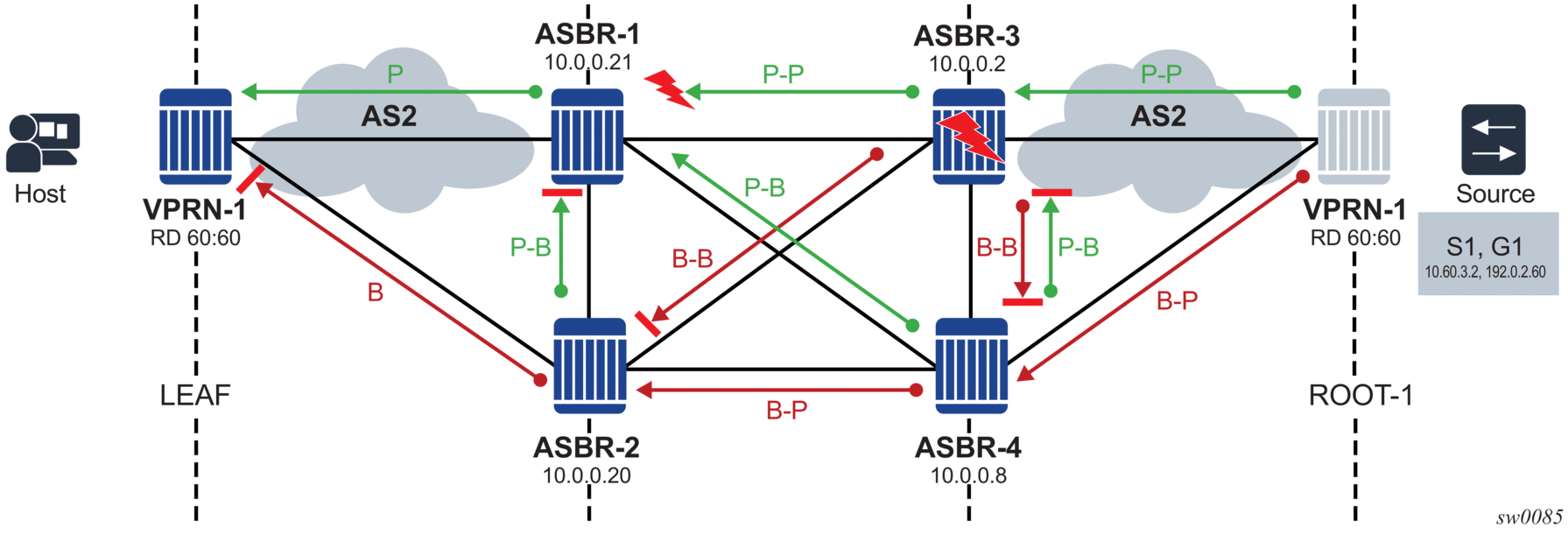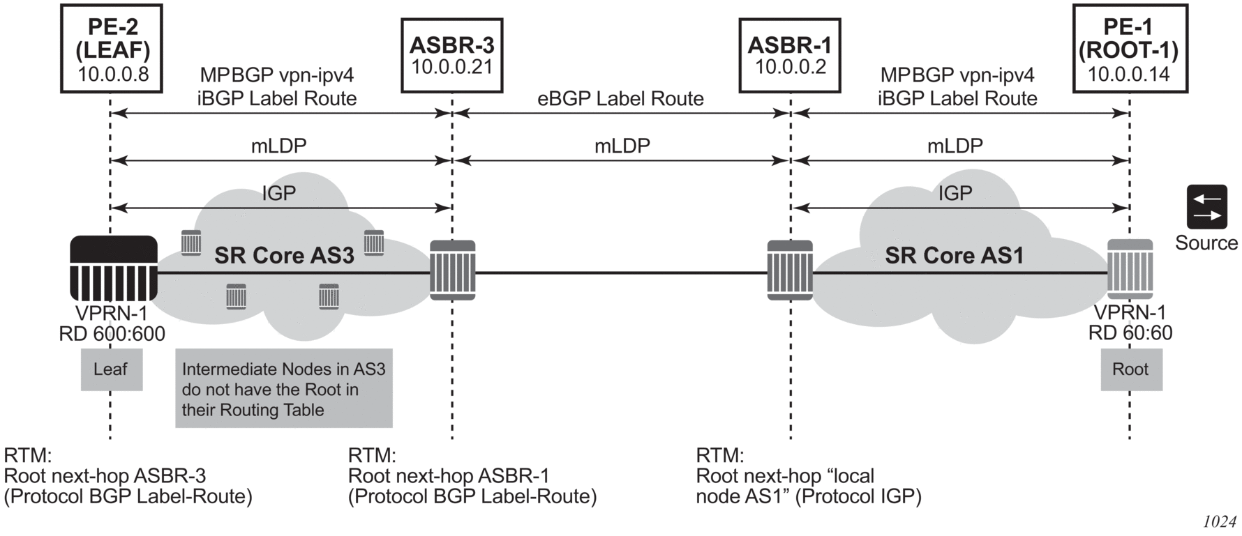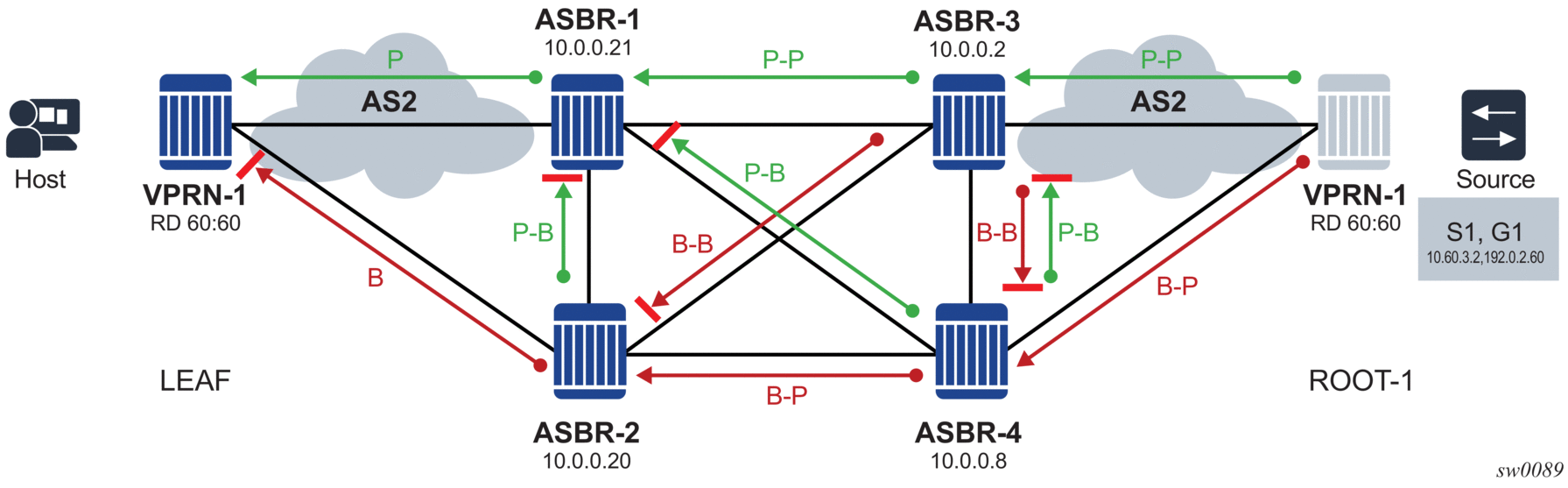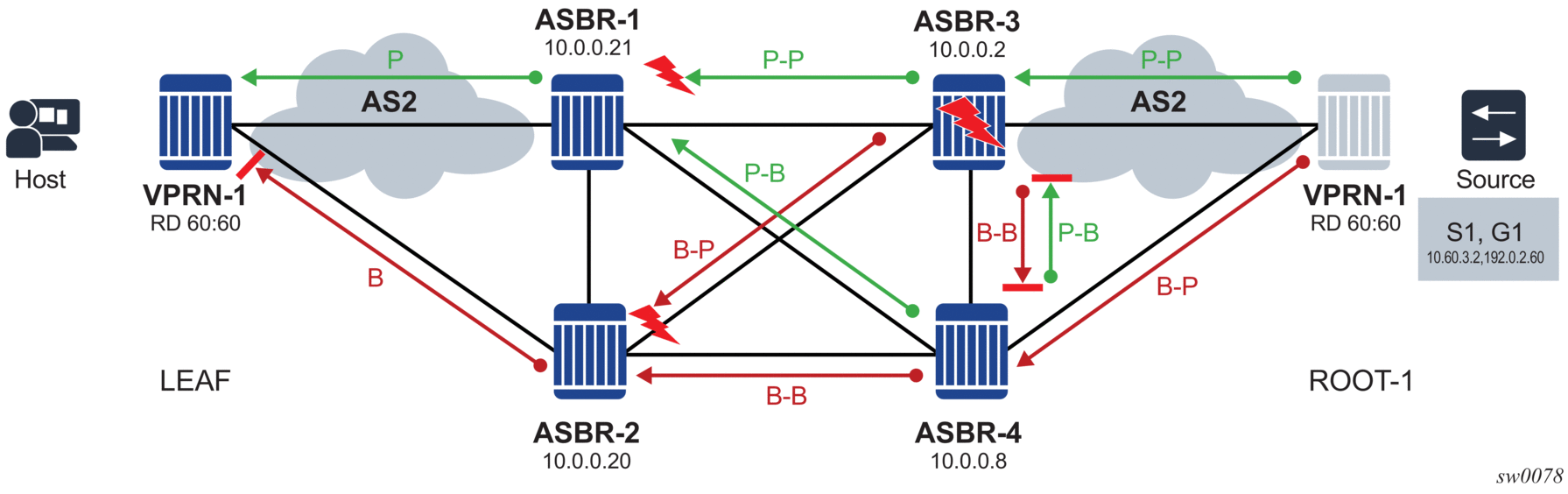 [Root LSR]-------[A]-(LL1)-----[B] ------(LL4)-[D]------