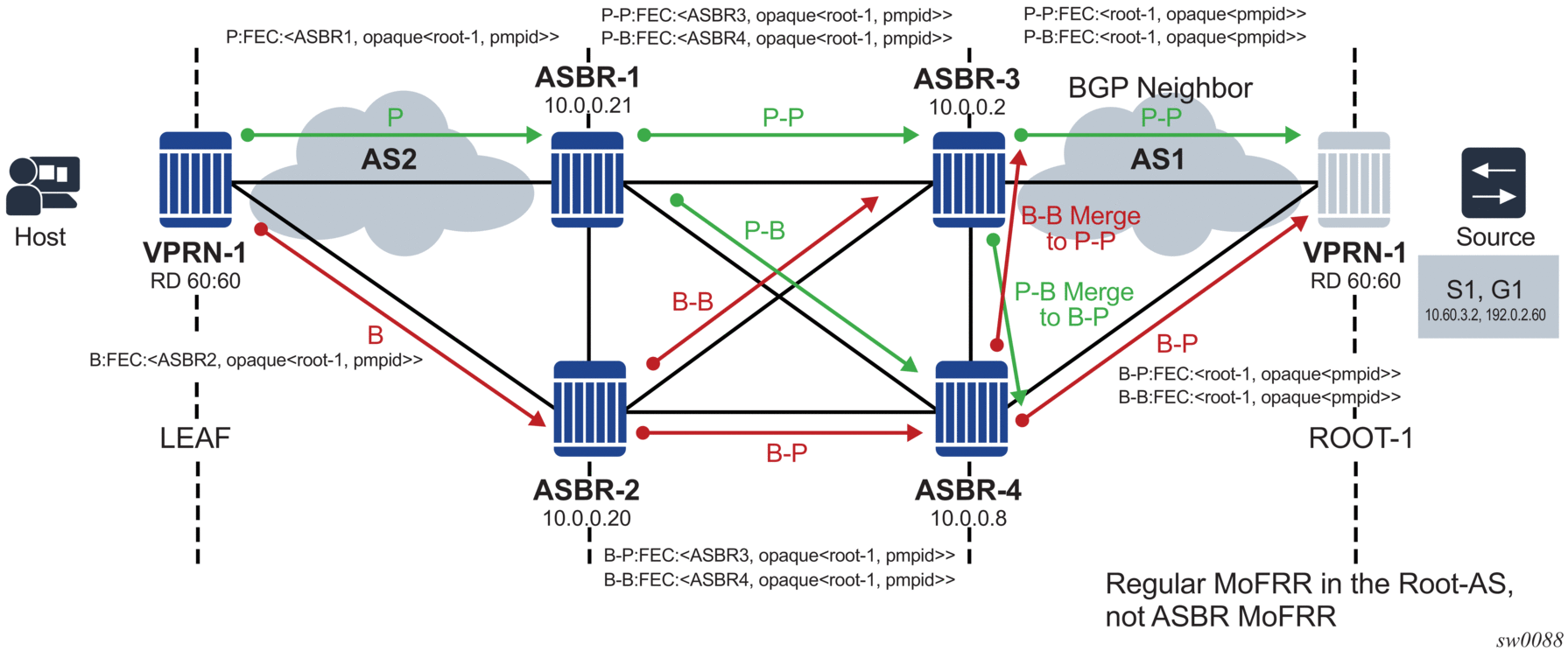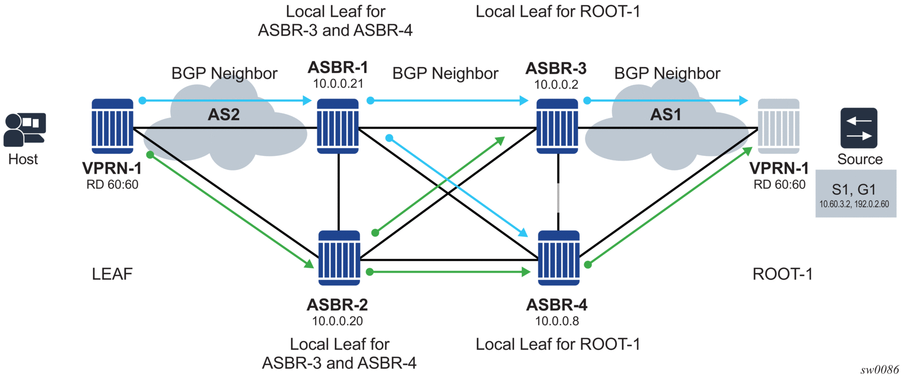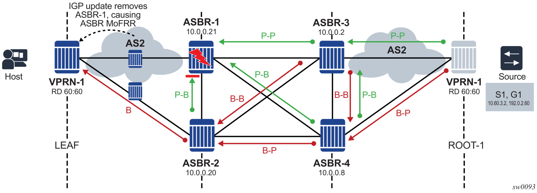 [Root LSR]-------[A]-(LL1)-----[B] ------(LL4)-[D]------