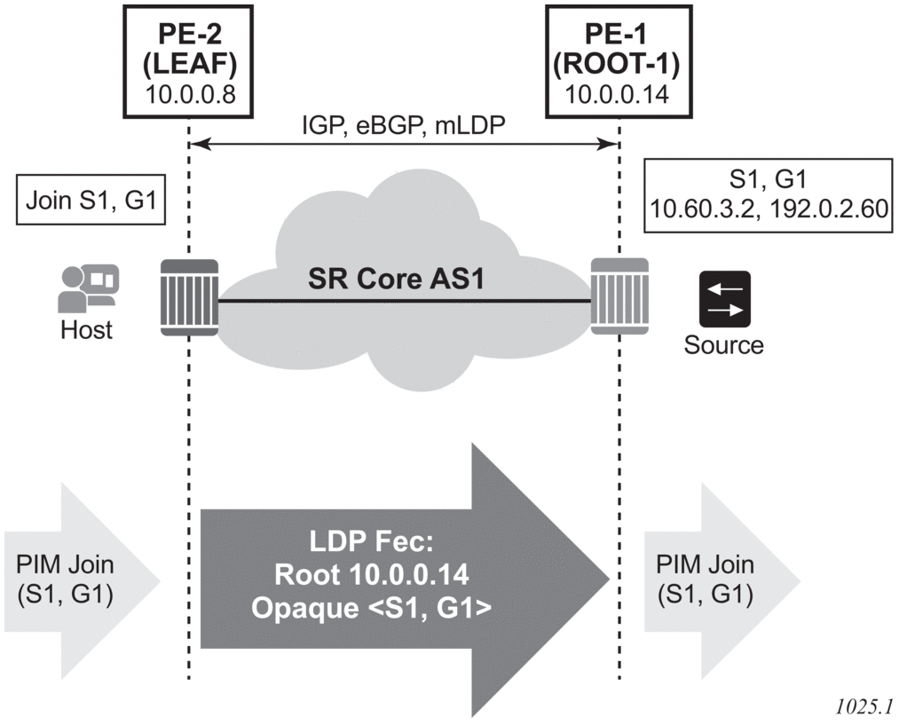 The policy can be assigned to mLDP using the configure router ldp import-mcast-policy policy1 command. Based on this configuration, the prefix list will match the mLDP outer FEC and the action will be executed.