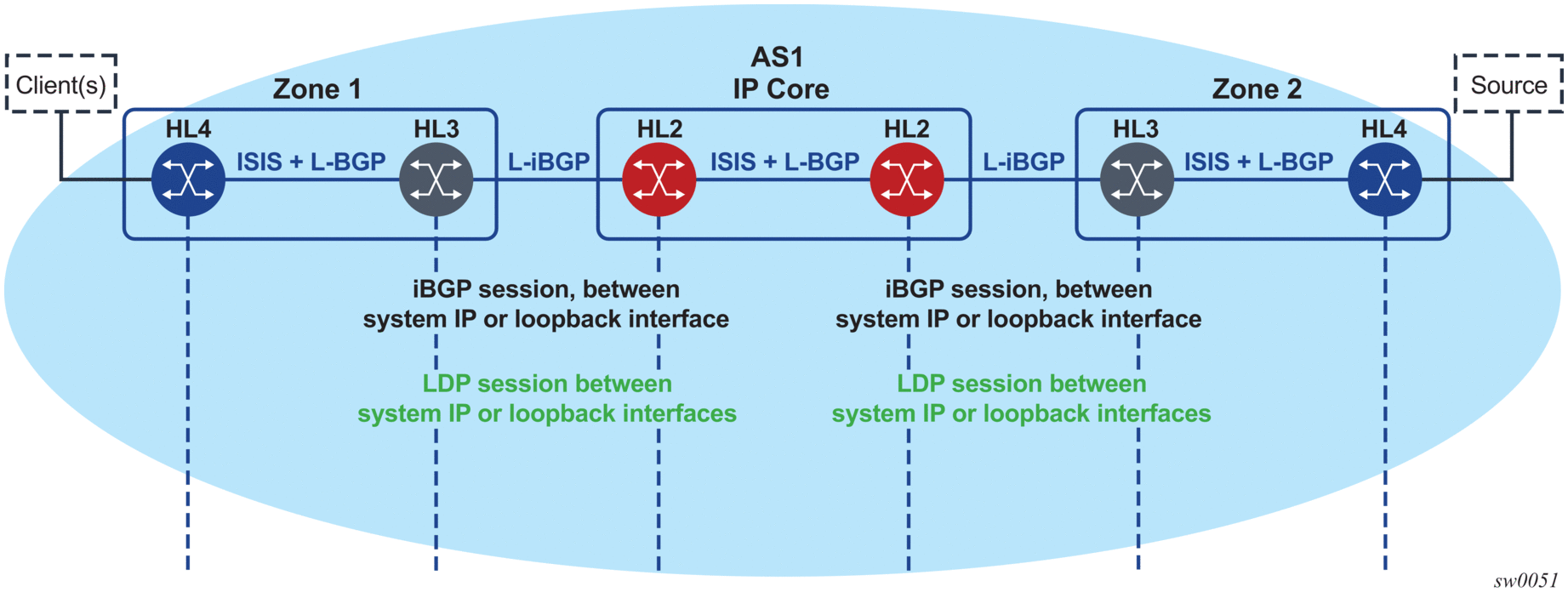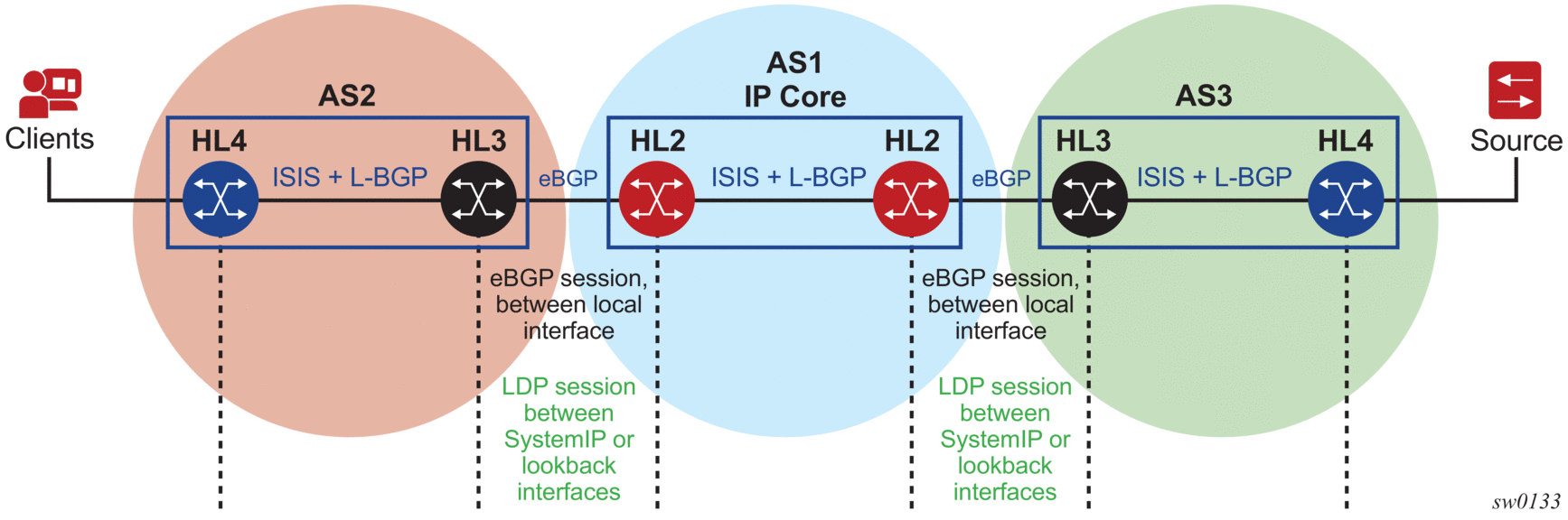 SR OS supports multiple targeted LDP sessions over a specified network IP interface between LDP peer systems, each with its own local LSR ID. This makes it especially suitable for building multiple LDP overlay topologies over a common IP infrastructure, each with their own community.