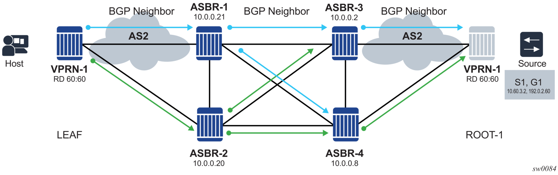 In the router, the adjacency management is done through the establishment of a Service Distribution Path (SDP) object, which is a service entity in the Nokia service model.