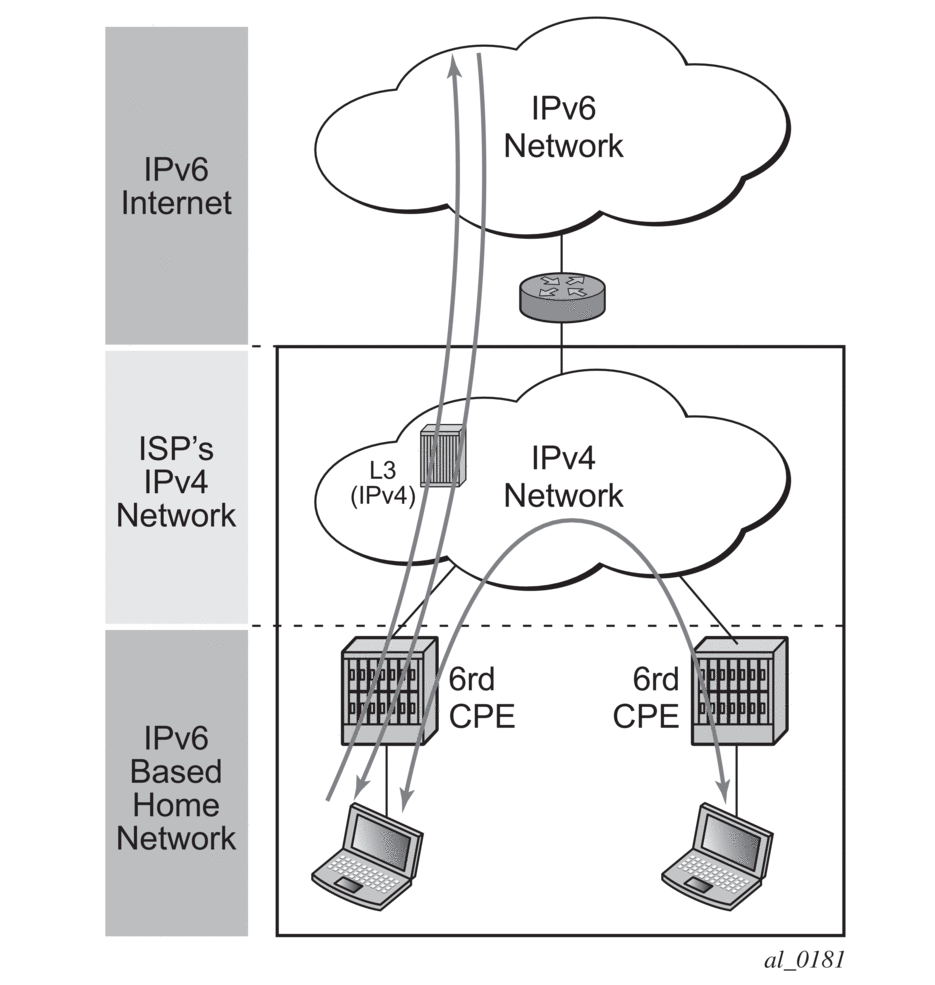 To provide IPv6 services to subscribers, 6RD is deployed in these access networks to overcome the limitations of IPv4 only access network gear (for example, DSLAMs) with no dual stack support.