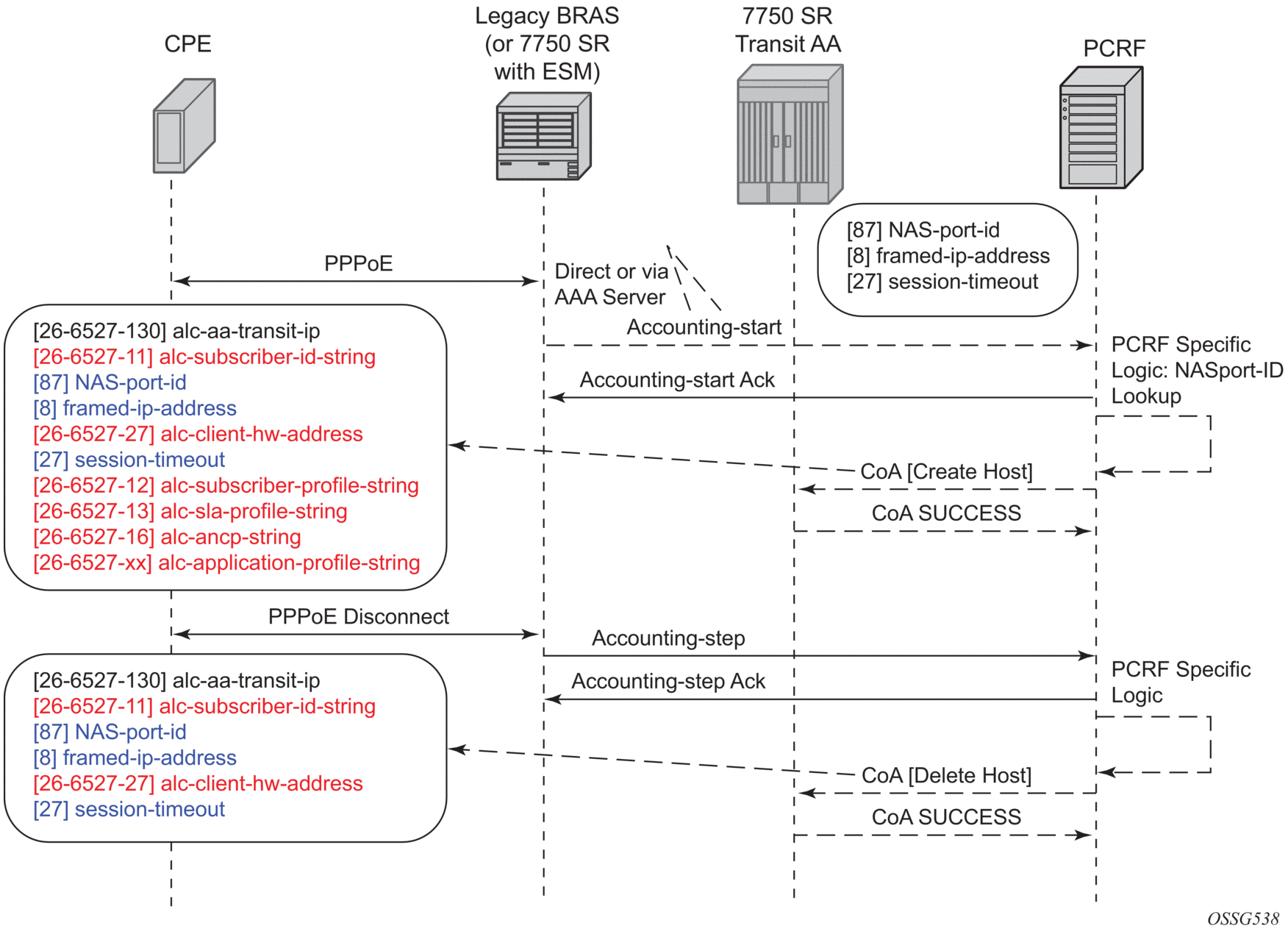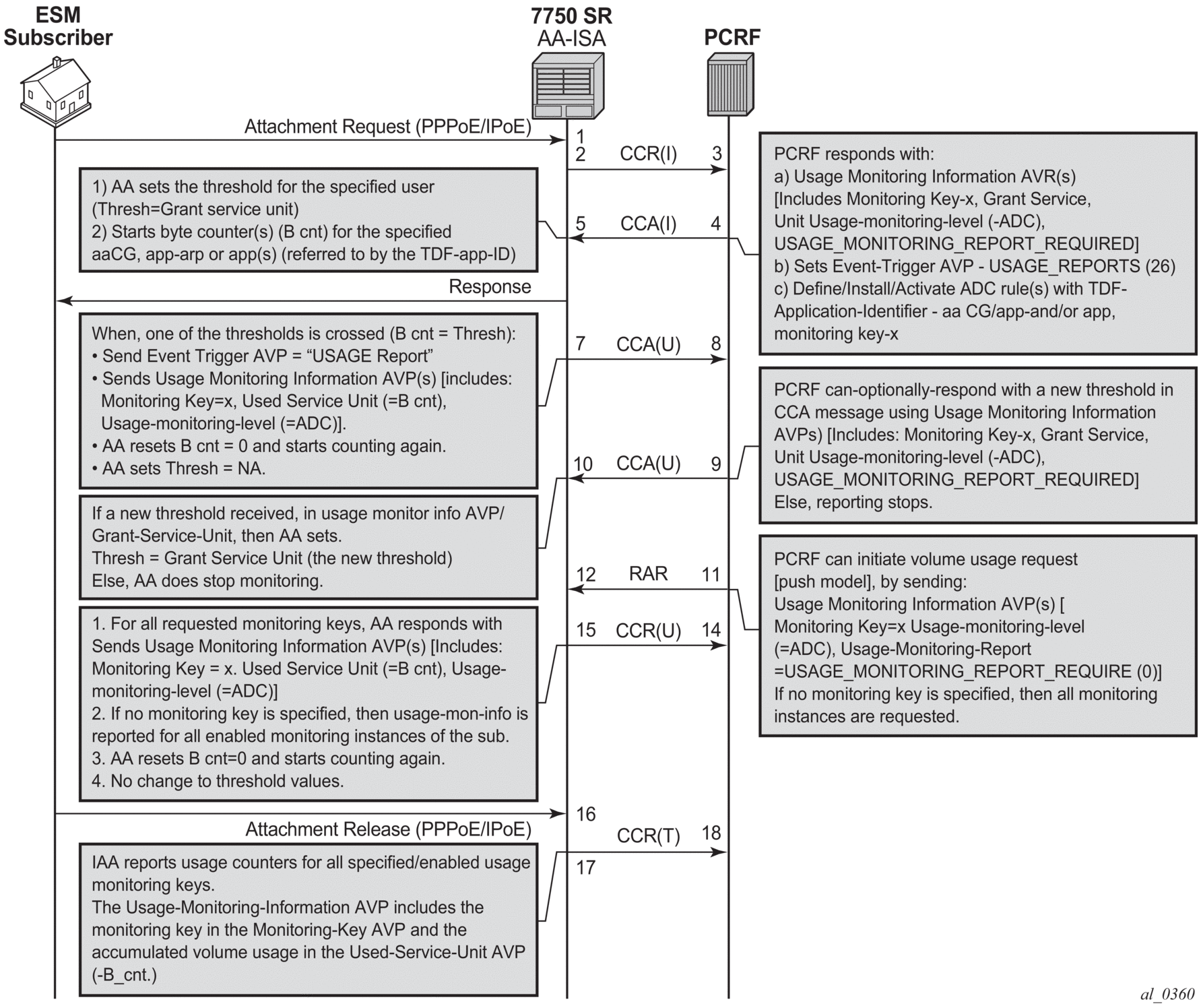 There are residential topologies where it is not possible or practical to distribute ISAs into the same network elements that run ESM, including for legacy edge BRASs that still need AA policy (reporting and control) for the same Internet services, and which needs to be aligned and consistent with the ESM AA policy. This is supported using transit AA subscribers, typically in the first routed element behind the legacy edge.