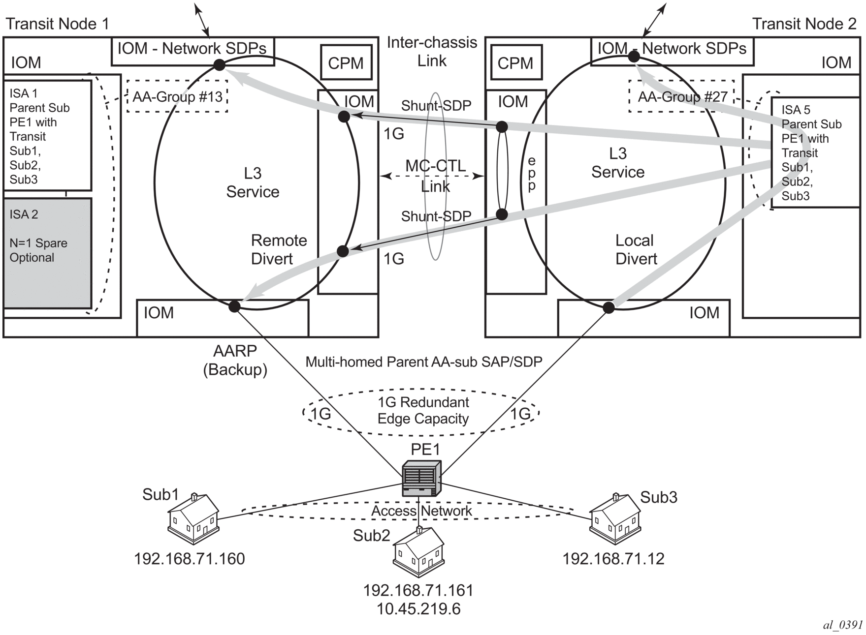 Residential Transit | Parent L3 SAP or spoke SDP | Transit AA | Transit Sub |