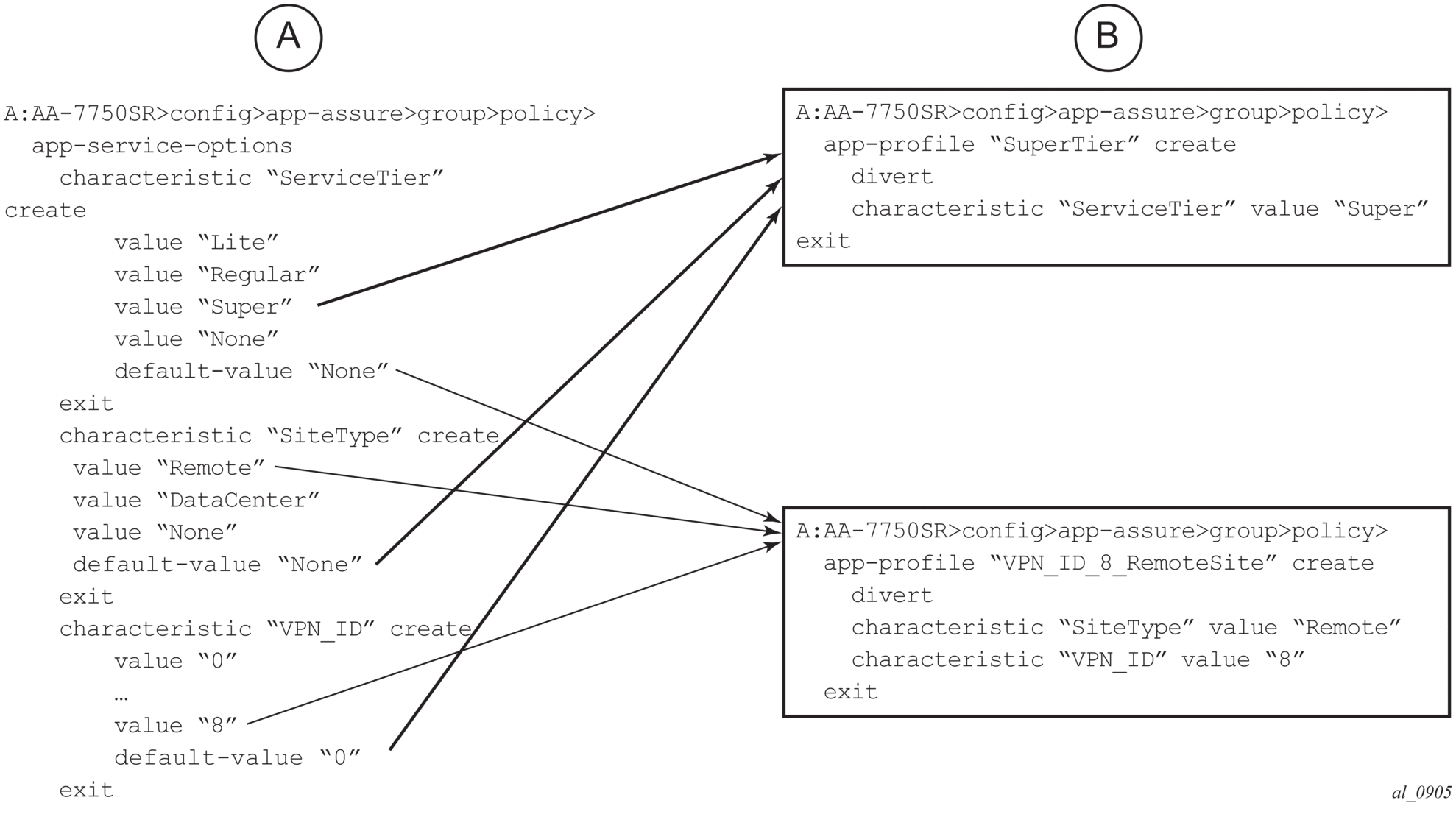 Load balancing operates across ISAs with in an AA group, and will not balance across groups. The system will ensure that app-profiles assigned to AA subscribers (ESM subscribers, SAPs and spoke SDPs) that are within a single VPLS/Epipe/IES/VPRN service are all part of the same AA group (partitions within an AA group are not checked or relevant).