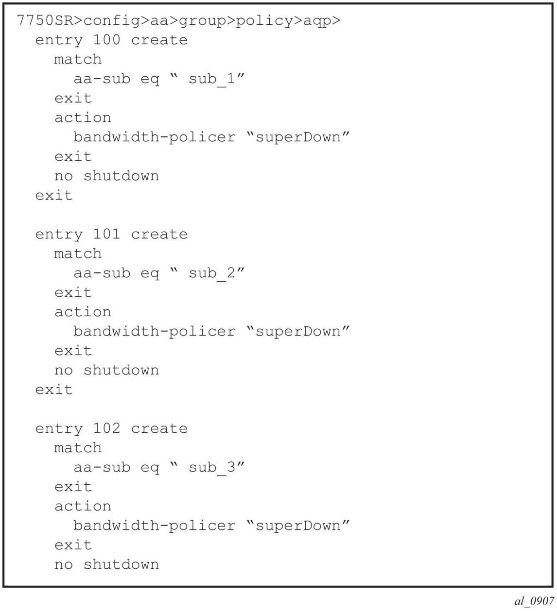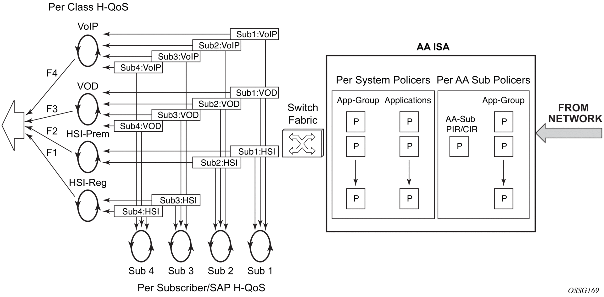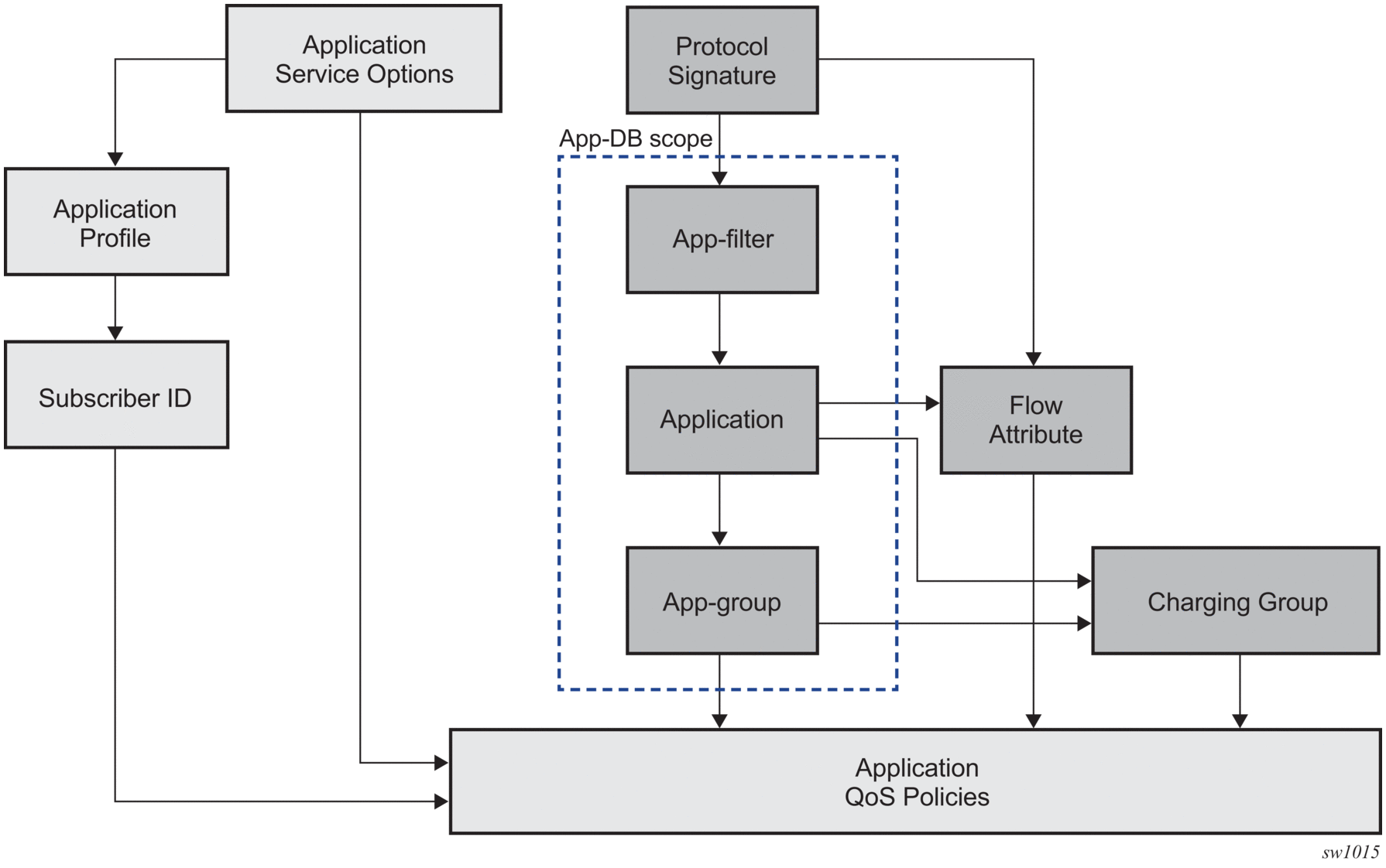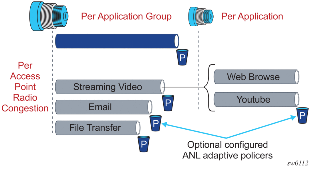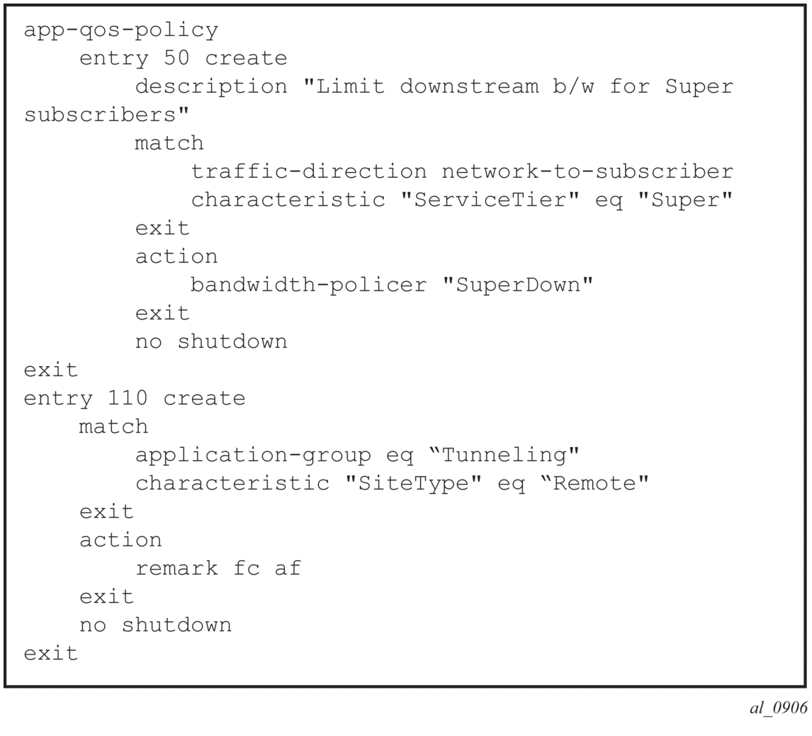 AA enables per AA subscriber (a residential subscriber, or a Layer 2/Layer 3 SAP or spoke SDP), per application policy for all or a subset of AA subscriber's applications. This provides the ability to: