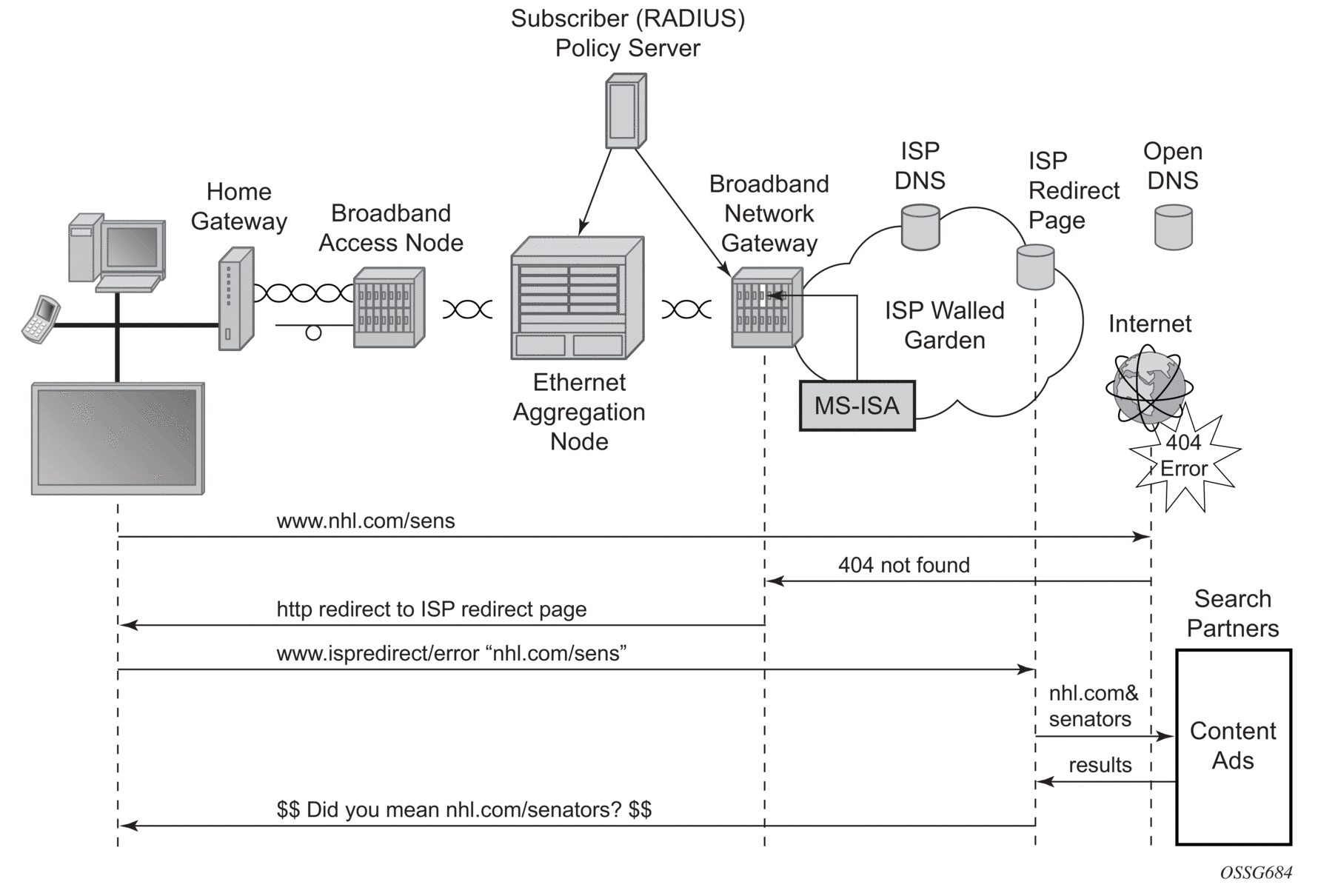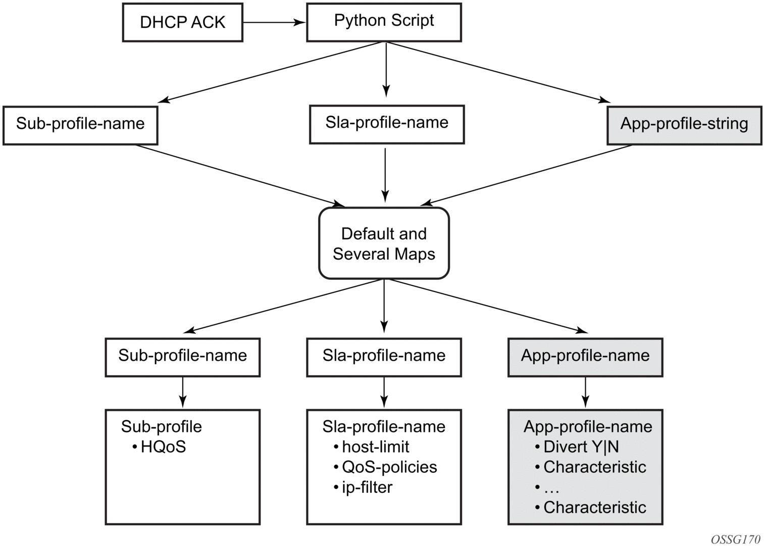 Asymmetry removal must be implemented in the first routed hop on the network side of the subscriber management point, such that there will be a deterministic and fixed SAP / spoke-SDP association between the downstream subscriber management the parent divert service.