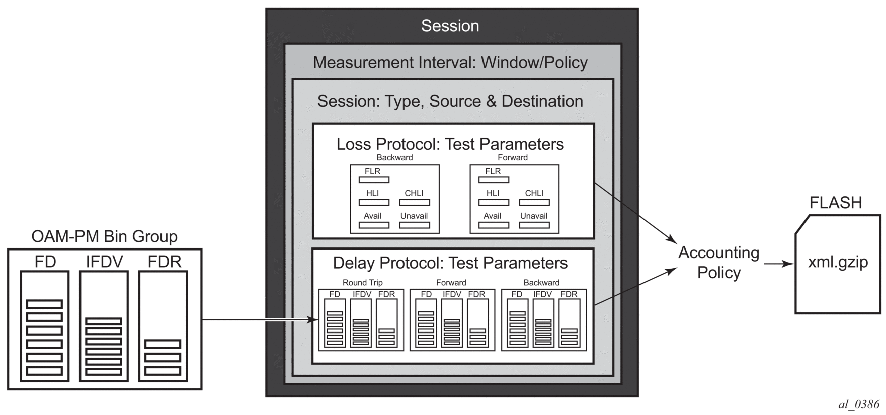 The OAM-PM session contains all the session attributes, test attributes and the loss event thresholds and the configuration of the event monitoring functions.