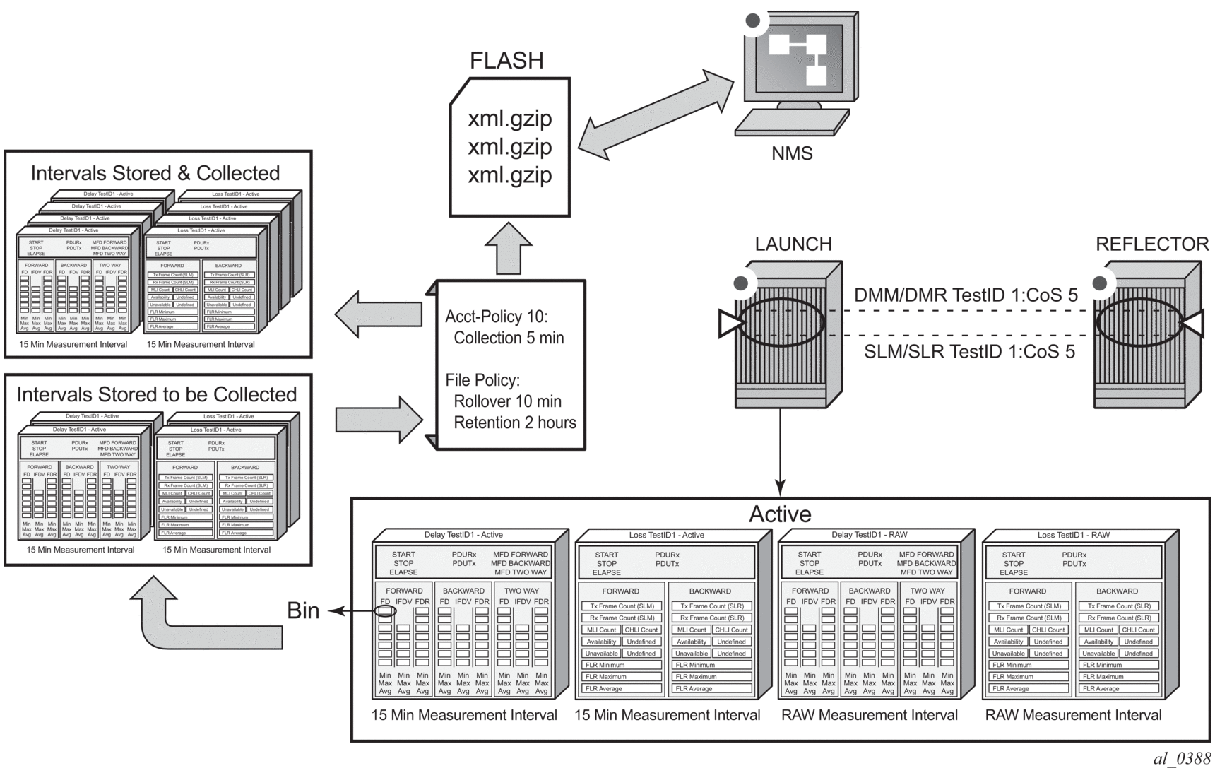 The LMM reflector must be configured to collect the statistics on the SAP or MPLS SDP binding where the terminating MEP has been configured.
