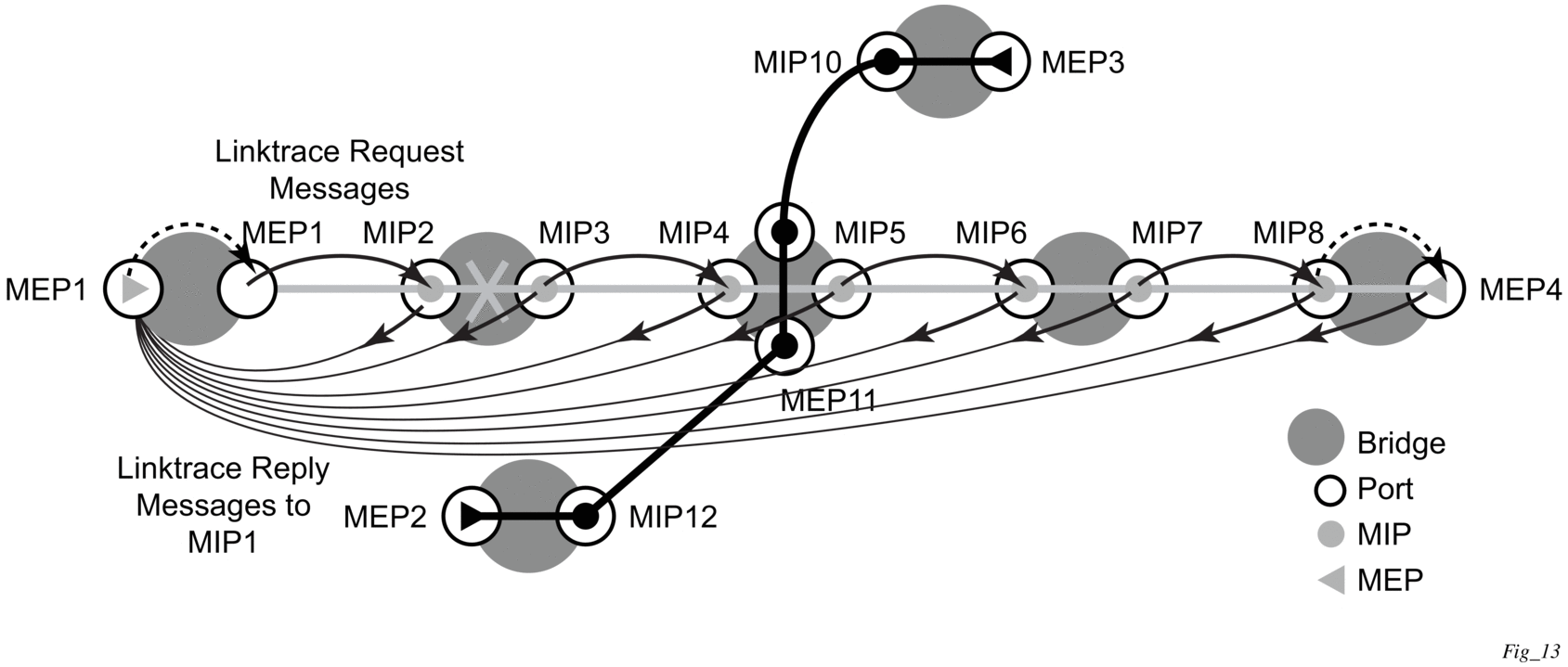 However, there are faults which the IGP/LDP control planes may not detect. These faults may be due to a corruption of the control plane state or of the data plane state in a node. Although these faults are very rare and mostly due to misconfiguration, the LDP Tree Trace OAM feature is intended to detect these “silent” data plane and control plane faults. For example, it is possible that the forwarding plane of a node has a corrupt Next Hop Label Forwarding Entry (NHLFE) and keeps forwarding packets over an ECMP path only to have the downstream node discard them. This data plane fault can only be detected by an OAM tool that can test all possible end-to-end paths between the ingress LER and the egress LER. A corruption of the NHLFE entry can also result from a corruption in the control plane at that node.