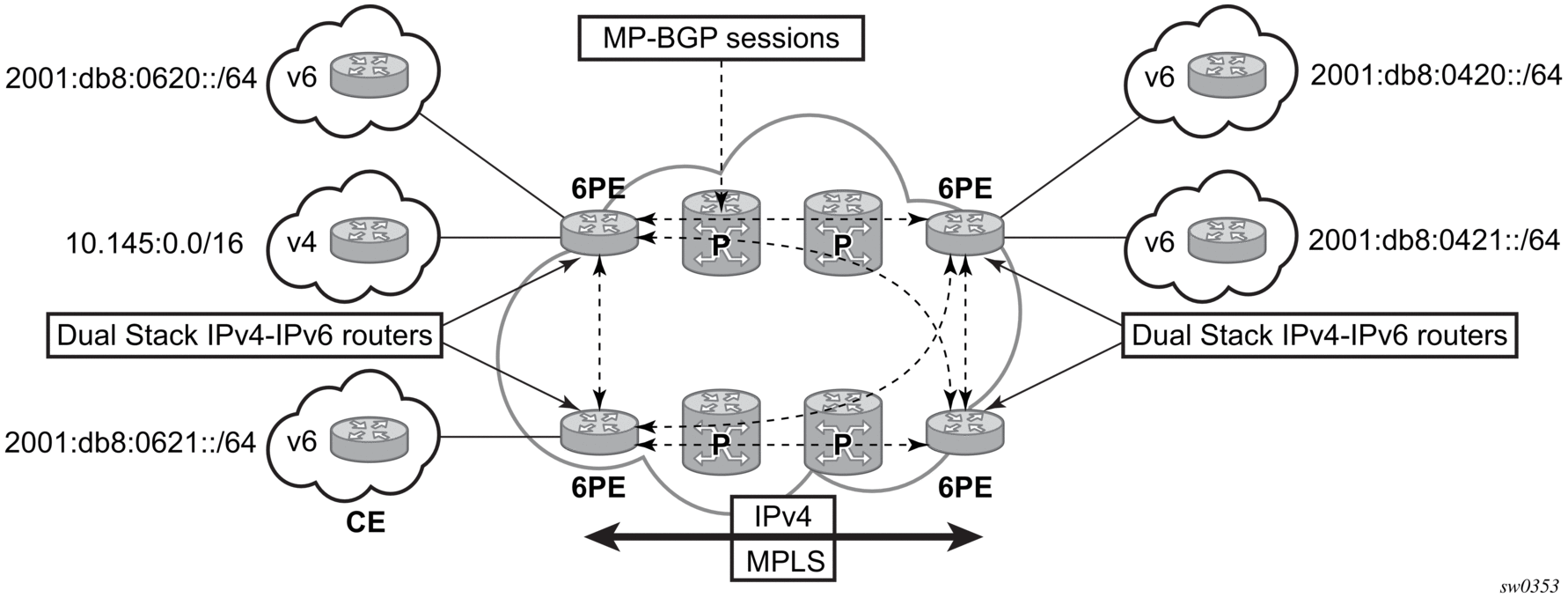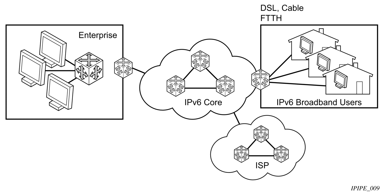 The -SR OS implements IP routing functionality, providing support for IP version 4 (IPv4) and IP version 6 (IPv6). IP version 6 (RFC 1883, Internet Protocol, Version 6 (IPv6)) is a version of the Internet Protocol designed as a successor to IP version 4 (IPv4) (RFC-791, Internet Protocol). The changes from IPv4 to IPv6 affect the following categories: