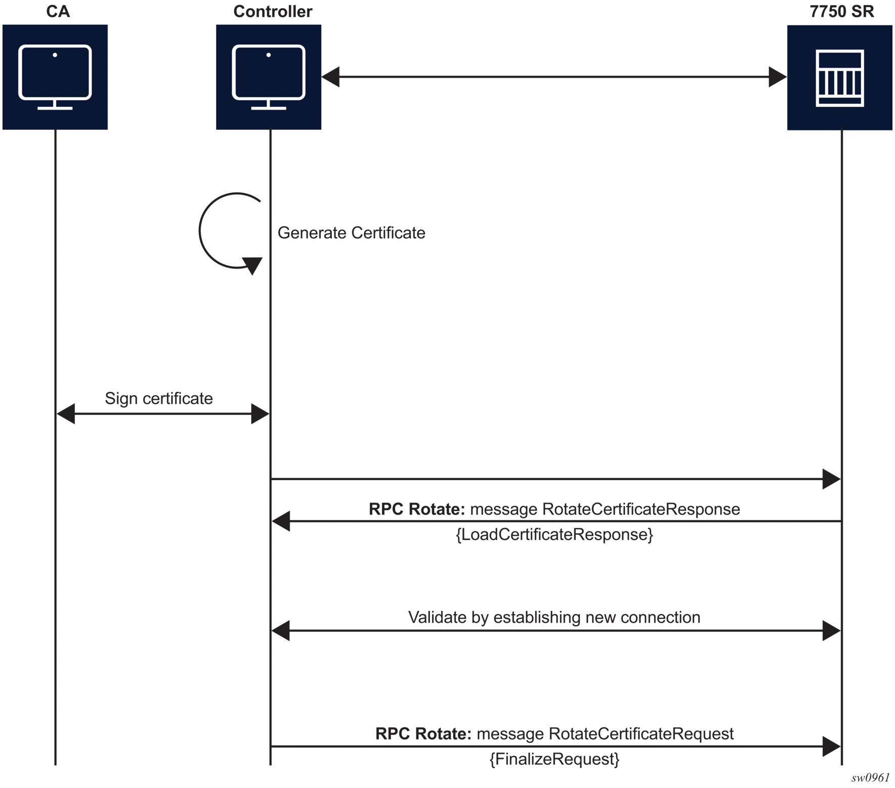 The controller is responsible for verifying the connection with the new certificate (Step 4 in Figure 28 and Figure 29); SR OS treats this as an optional step.