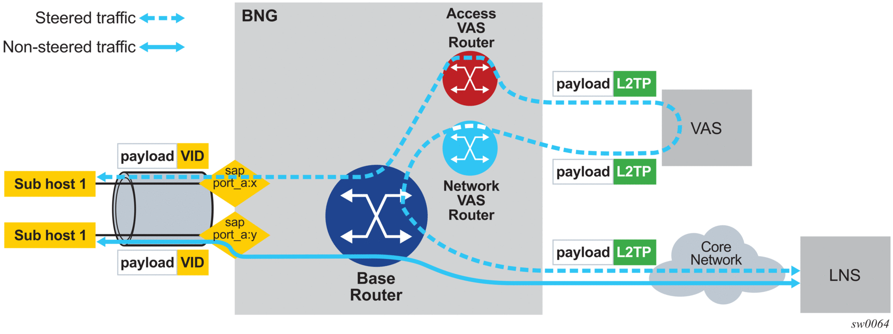 Each PPPoE/L2TP session has an operational state of traffic steering that prevents a traffic black hole caused by problems such as an incorrectly configured network or a temporary VAS outage.