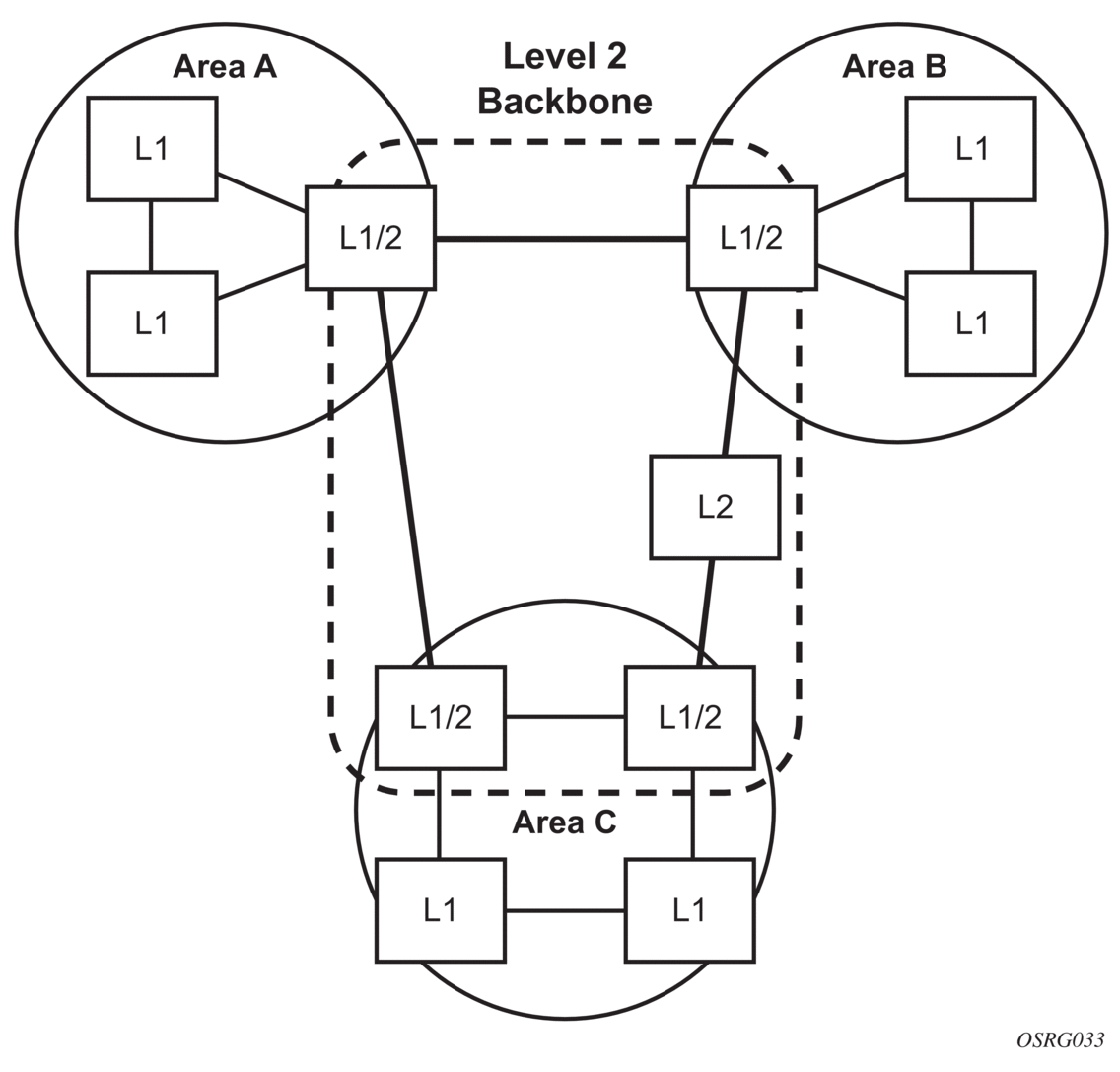 OSI IS-IS routing uses two-level hierarchical routing. A routing domain can be partitioned into areas. Level 1 routers know the topology in their area, including all routers and end systems in their area but do not know the identity of routers or destinations outside of their area. Level 1 routers forward traffic with destinations outside of their area to a Level 2 router in their area.