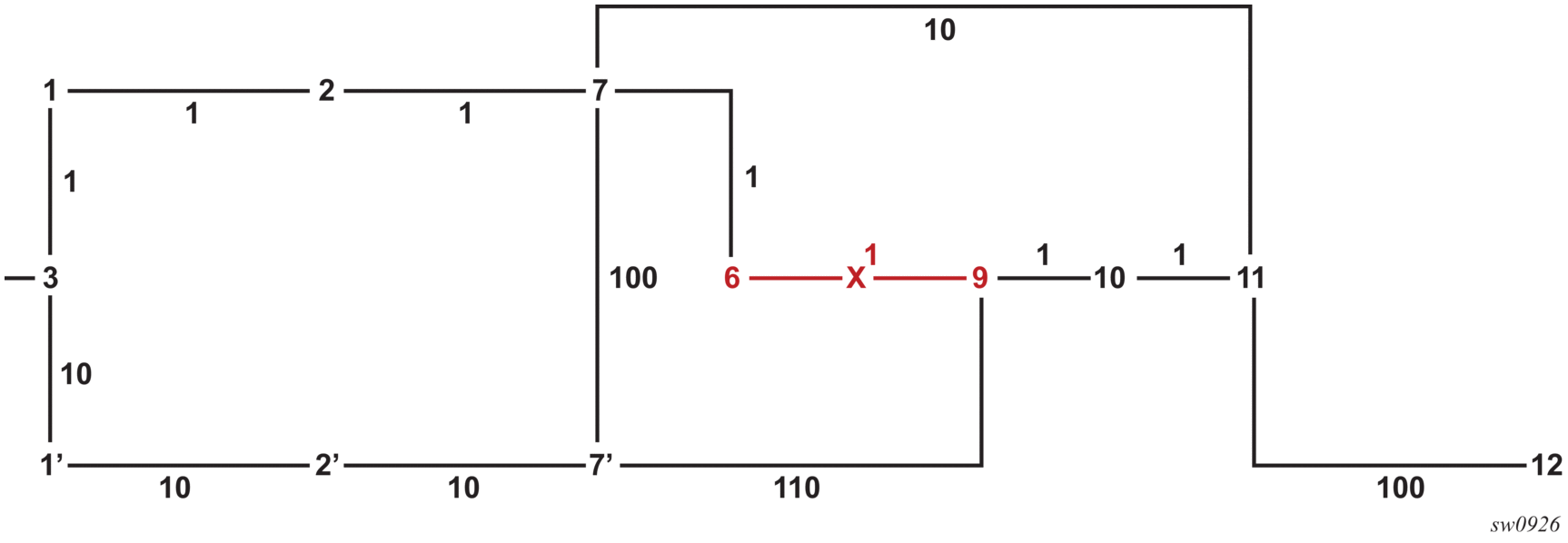 The network topology in Figure 28 depicts an example of link addition or restoration.