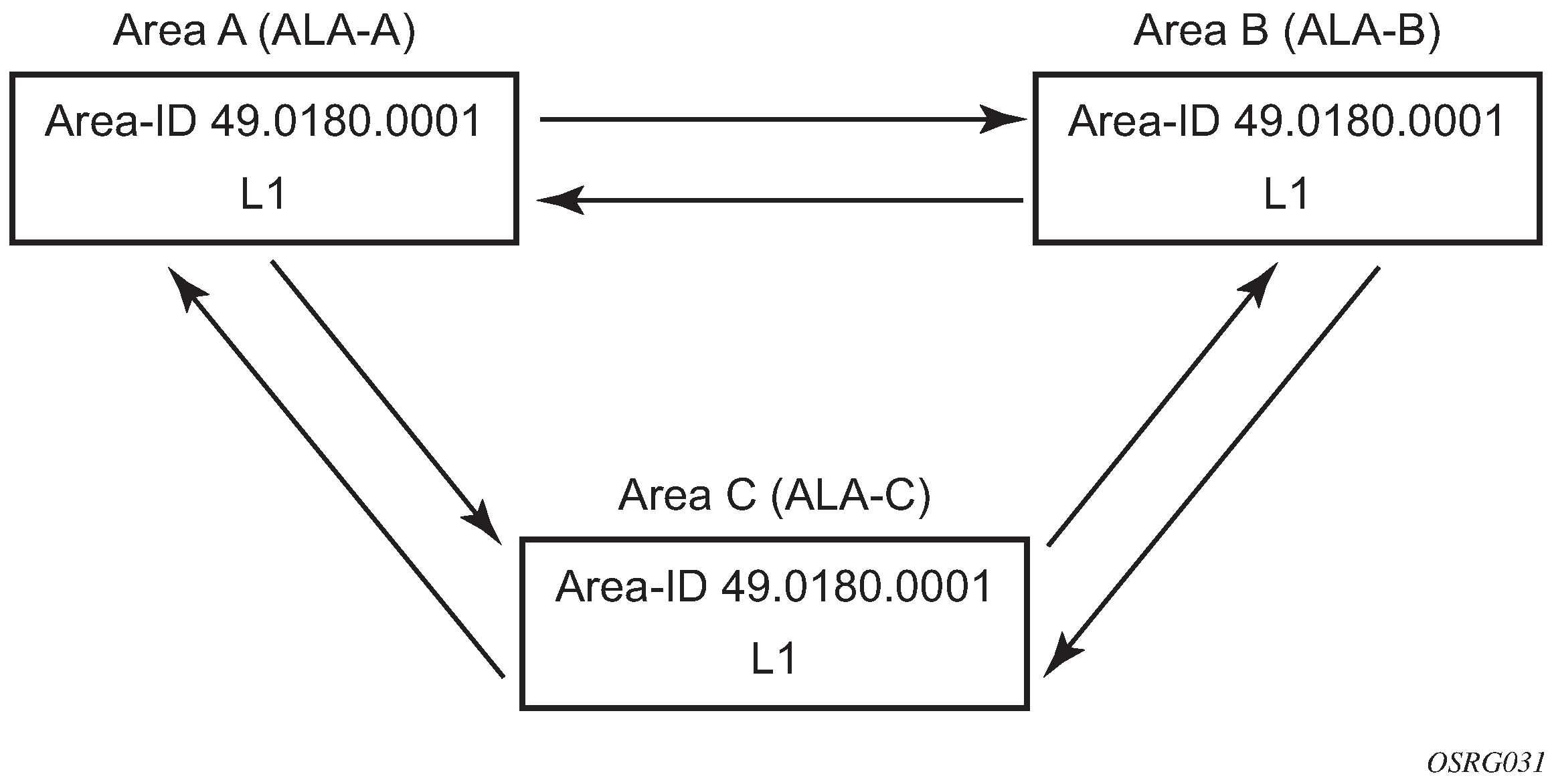 Interfaces are configured in the config>router>interface context, as shown in Figure: Configuring a level 1 area.